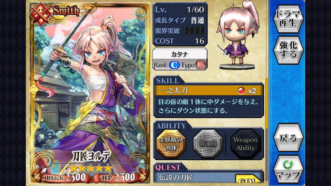 ABILITY:强撃,普通攻击时,一定机率把敌人击倒(5%)。