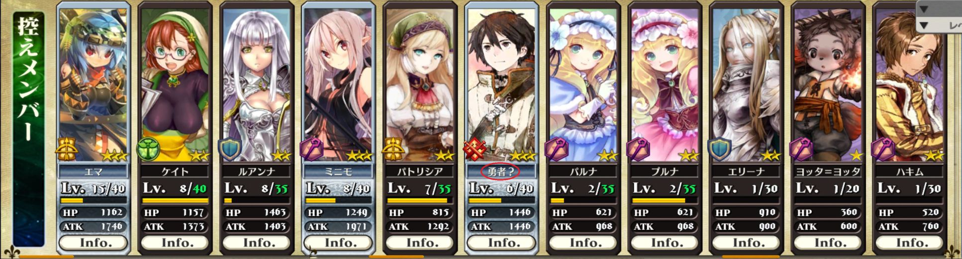 就板上一些玩得比较久的玩家而言,上述两张三星卡肯定不会拿到A武,所以我也会这么做!! 也因为如此问题就来了,如果扣除升级A武用的ロングボウ,以你们的观点うら若き商才エンヴィ和魔境の案内人エマ这两位,生木の弓和以上其他几把弓,你们会如何分配给予呢?