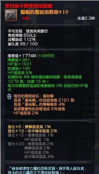 【Lv60 火炮冒险之路配置表】