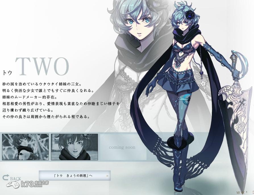 身为歌谛姐妹老三的她,世界妹中的开心果,也是「砂之国」目前的统治者。由于开朗活泼的性格,因此很容易跟人打成一片,同时目前她似乎也有相恋相爱的男性在,而且由于率直的爱情表现态度,因此目前与对方似乎相处得还不错的样子。