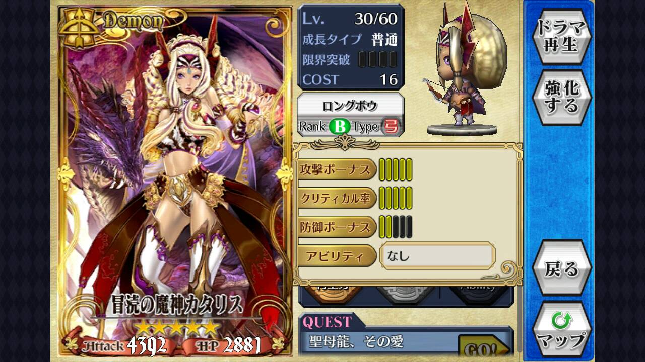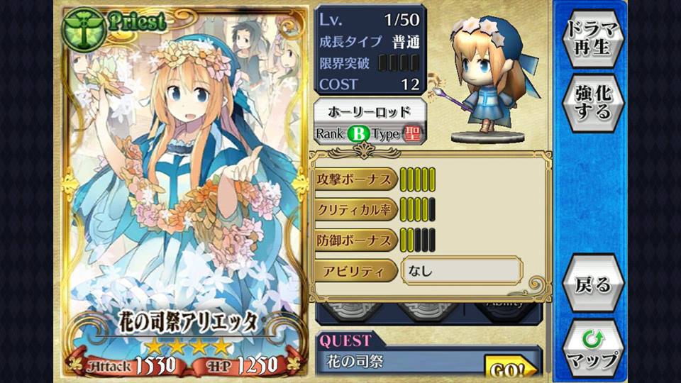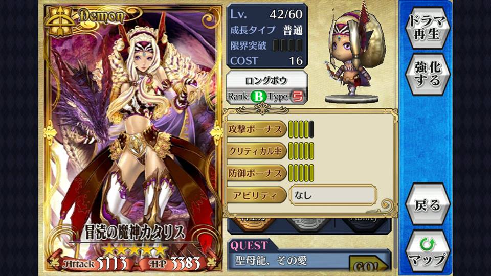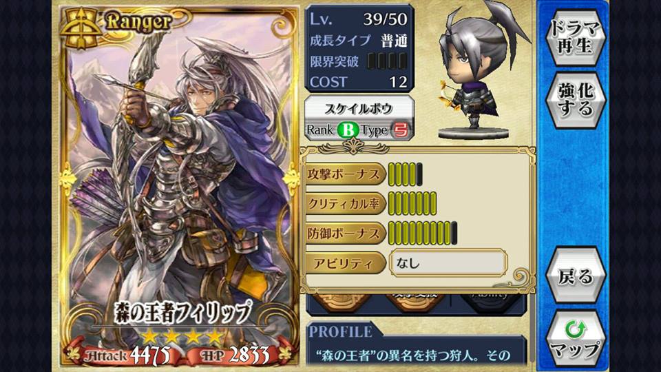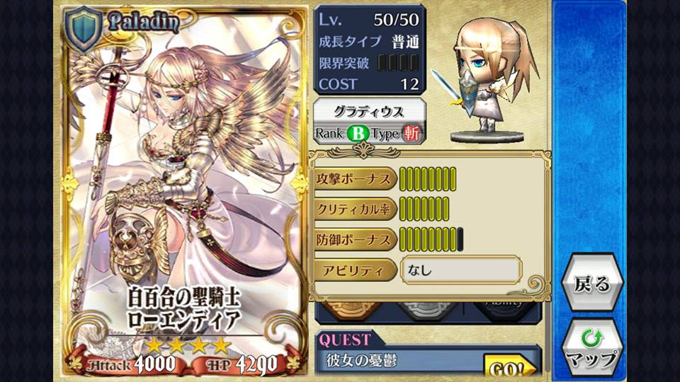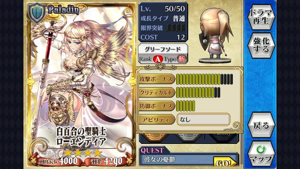 玩家可因为角色的定位及打法配上不同加值上限的武器,如持[突]武的法师(魔法兵団队长フェブリア SR),应选用攻击Bonus上限高的[突]武器而非防御加值高的,反之经常于前线作盾的骑士则应换上防御加值高的武器,使之相得益彰。