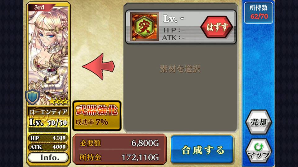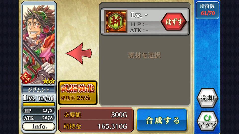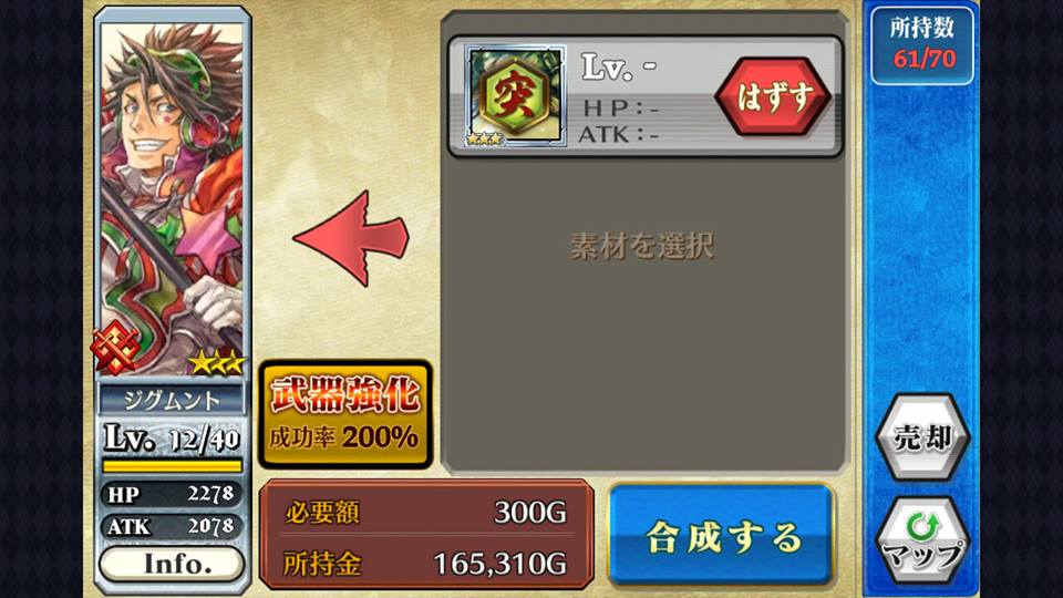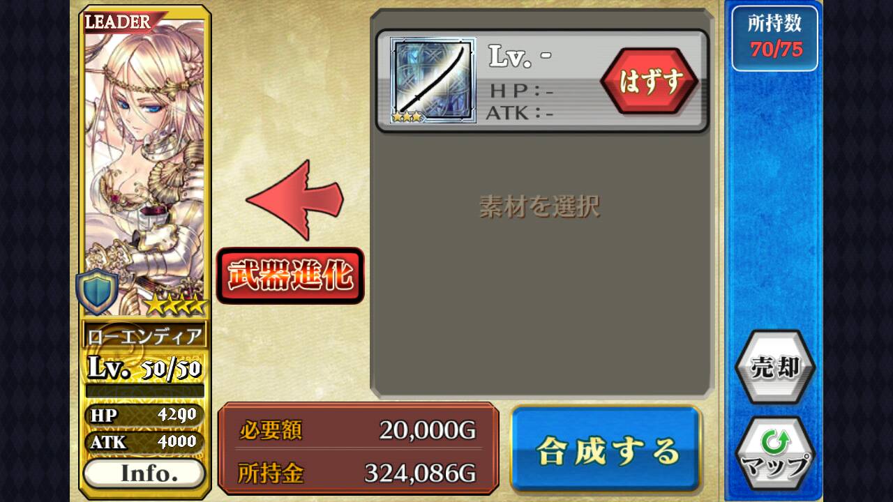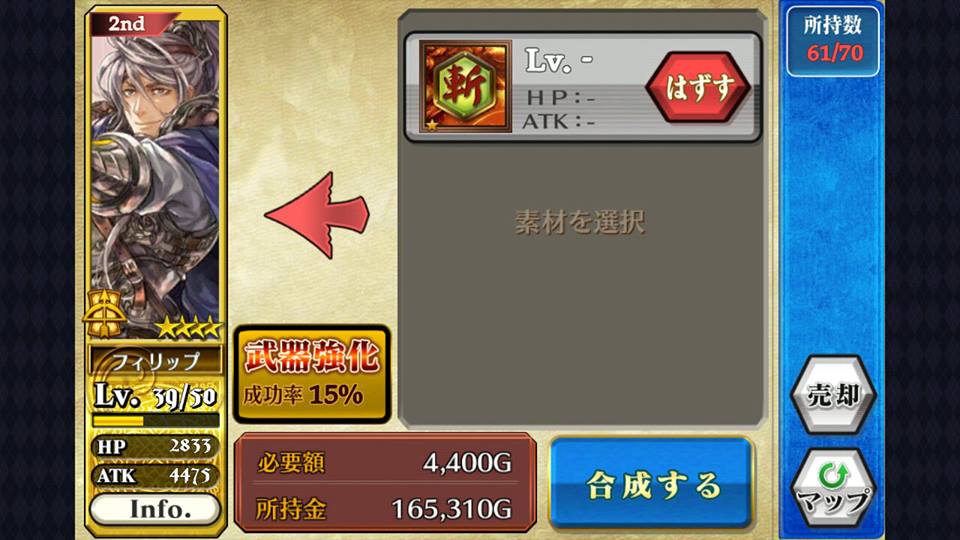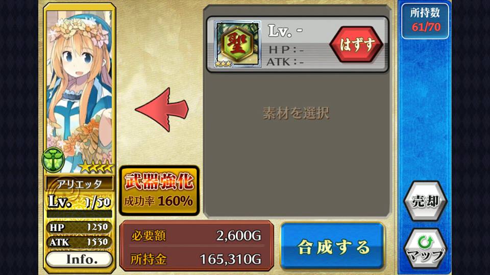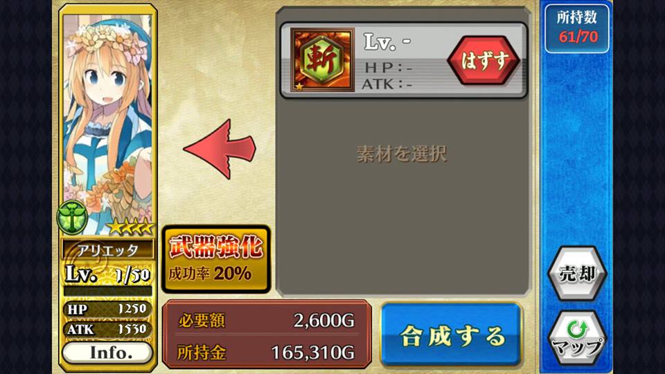 哪又要怎样把武器进化?只要于合成版面中,把武器卡选成素材就可以替角色换上武器。