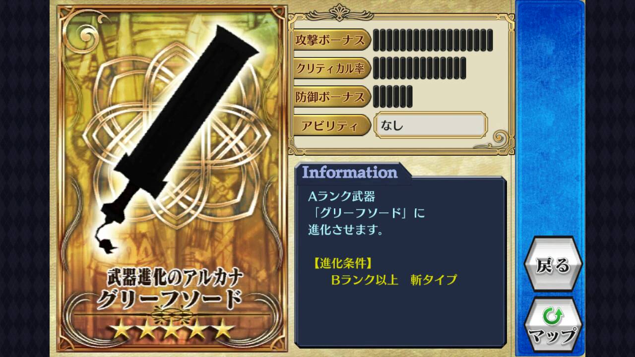 5. 武器可以煺化,由Rank A 进(?)化成 Rank B的。