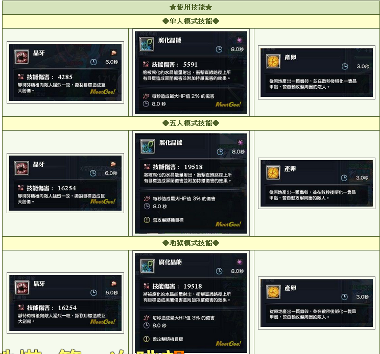以下小编把游戏《幻想神域》中43级副本奇迹矿道中的全部BOSS齐尔隆、克拉姆以及血面‧泰塔尼奥三个BOSS的各种模式的技能效果及伤害值查询,另外附上一些小技巧,希望对大家会有用!