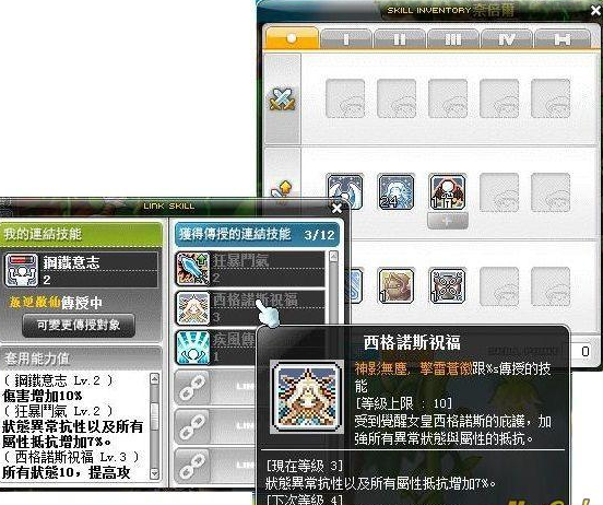 个人帐号中有一隻102等闪雷跟120等圣魂,传授都丢给同个角色可以累加,其中上面有註明等级上限10,代表往后要是皇家骑士团5职全开的话,一个角色最多可以获得25%的双抗。