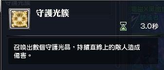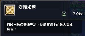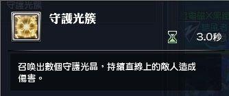 佛伦会使用守护光簇召唤数个守护光晶,这些守护光晶会屡屡施放直线型攻势来干扰玩家(而且不像萤沼水洞的冰刃图腾能被玩家打掉)。尤其是当佛伦的神雷环跟守护光晶的攻势重叠施展时,玩家能闪的地方就更小了。因此,不想要踩到红地毯的话,一开始就要选定图腾与图腾之间的空隙来站。虽然这样子不代表玩家就不会被这种攻势打到,但至少是比较有地方可闪的。