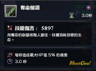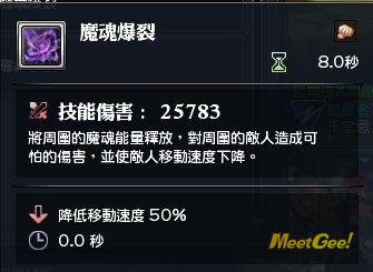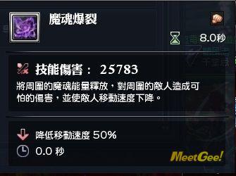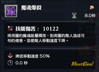 蒙奇斯特的攻击手段有叁种,第一种是攻击随机目标的妖魂弹,除了让玩家受到伤害,更让玩家的移动速度下降。若是玩家因此变得更难走位,在接下来几秒内的攻势肯定是凶多吉少(同样地,被蒙奇斯特的夺命枷锁捆绑住,肯定是更不好受的)。而打蒙奇斯特最棘手的,还是在于蒙奇斯特战役中所出现的绿波跟紫波。