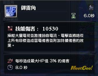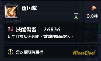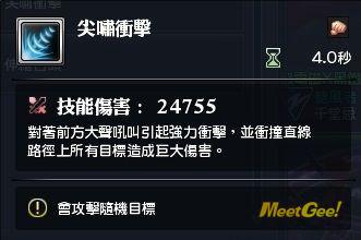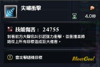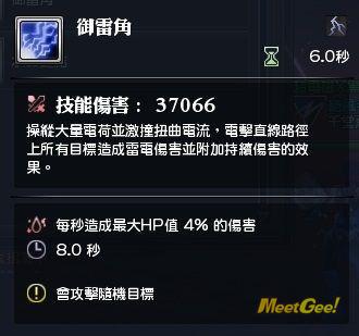 霍尔斯‧圣角可说是目前所有副本王中,攻势最为失控的一只。霍尔斯‧圣角需要提防的昭示有两招,第一招是御雷角,这是直线广范围攻击,虽然不难闪,但要是没闪过的话,血量可是一次扣25000 以上的,更别说还有附带每秒扣血4 %的状态,就算当下没死,碰到BOSS 使用水晶键结这一招,一样是凶多吉少。