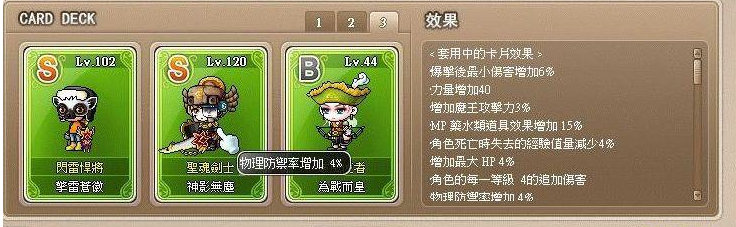 圣魂剑士的角色卡跟之前出的几个新职业相比可以说逊色不少,增加%物防看起来虽然不错,不过高防的职业不用特别撑也可以满防;对盗贼或枪手、弓箭手这种防本来就不高的职业来说,S卡的4%防可以增加个100防就要偷笑了。所以要创圣魂的话建议创在近战多的帐号(例如拳霸或英雄、黑骑这种防不是特高的类型),也可以另外搭配三剑士卡增加总伤害。