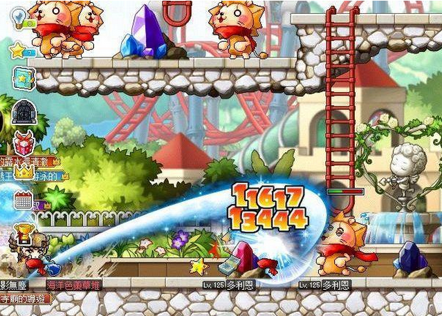 月影的攻击範围是涵盖上下的正方形区域,在金钩地城这种多平台的地方非常吃香,到80多等可以打金钩地城之后升级速度完全是用飞的。