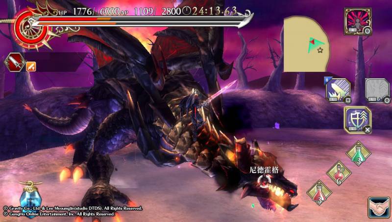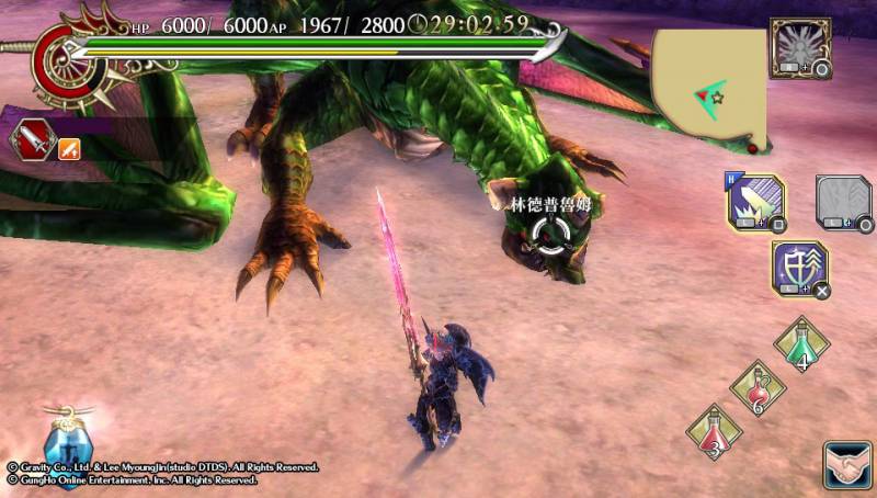 2.高手剑士破角:用ACE技能怒爆击破,一开始黑龙不会做太多动作,只会向你那边走,你这时候可以用怒爆击破它的角。