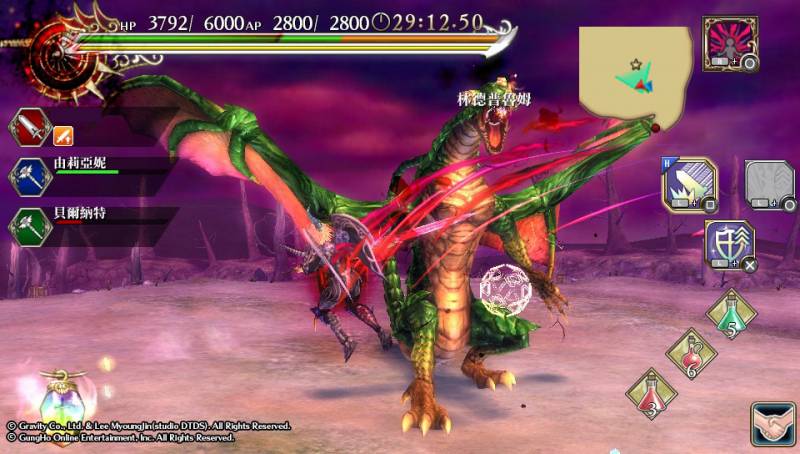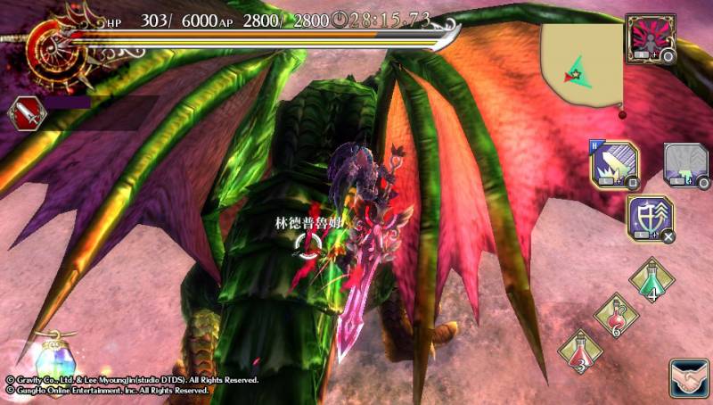 1.进场用战士,先激发ACE技能:狂怒体式(增加攻击力的),并按PSV左边十字键【上】,锁定绿龙头部,爆气飞过去打角,破掉后到第二步(稍微高手一点就是:有时候绿龙会整身站立起来怒吼,你这时候可以猛往上跳到它头上击破它的角)