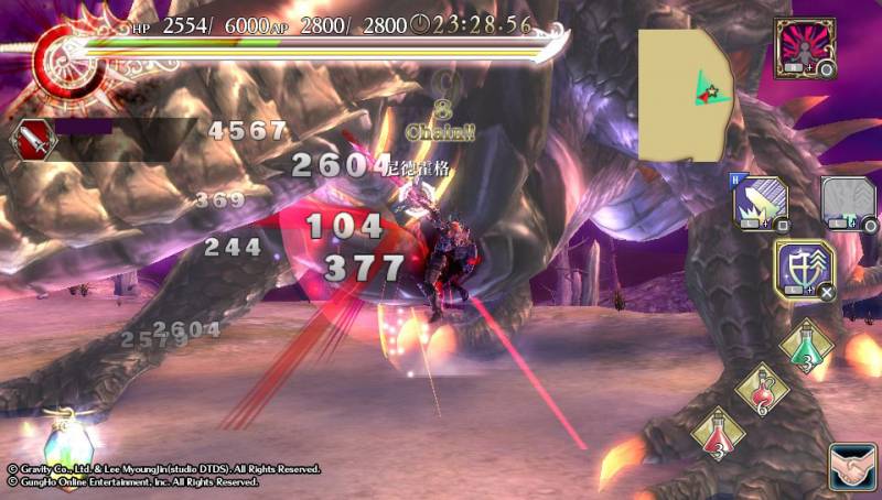 怒爆激光:我自己起的名字,这技能很强力,中了基本掉3K~4K的血,躲避方法是尽量跨步到黑龙尾巴那里,千万别去脖子下面,这个技能除了空中范围广,连龍脖子下面也不放过。