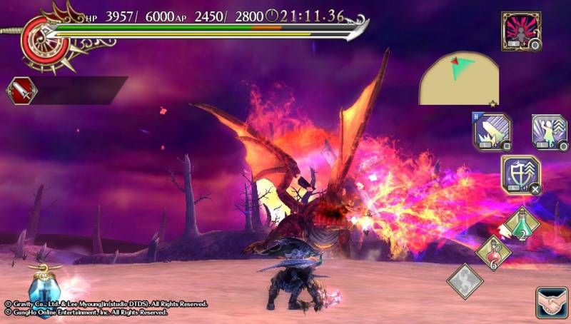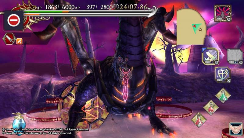 符咒能量球:这个技能大家一定要注意,第一就是不要看黑龙那里蓄力就跑到它头那里,只要你站过去,对不起,你100%被黑诅咒区域给吸住,然后就等死吧,一般会召唤多个能量球,这些能量球360度旋转着有点像摩天轮,当然躲避不难,站在黑龙后腿即可,当然你技术好一些可以去破角,时间还是很充足的。