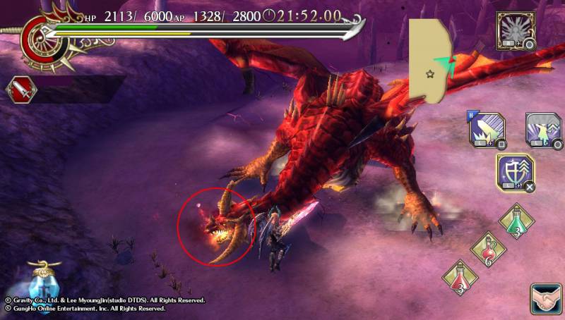 1.红龙出现后还是老方法,按上锁头,去破角[要破2次,左右角] ,有时候按上会锁定尾巴,估计这货块头太大了,所以大家要调整一下,然后和黑龙一样要破2次角。