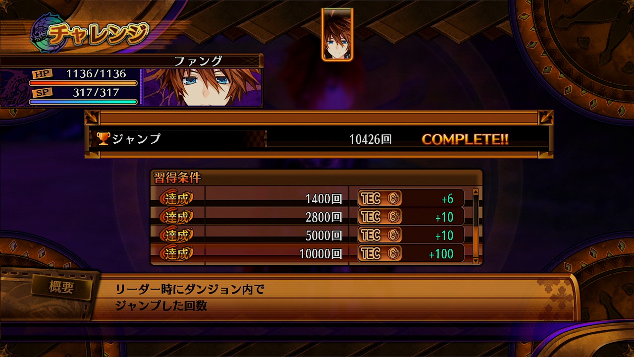 不过有玩过神次元的人应该都知道个人挑战的可怕,像是跑50,000公里路程需要花五天时间(现实时间...)。但还好本作大幅轻减项目的需求度了,像是跑步变成最高只需要120公里,也没有甚么负面要素的要求挑战,像是攻击MISS几万回或是逃跑失败等等。很适合初期去花点小时间挂成就来获得很多点数强化角色↓