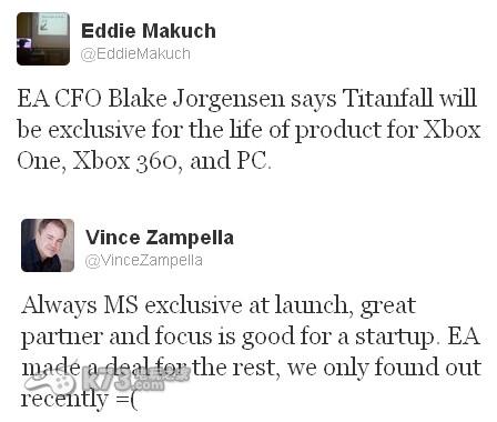 日前有索尼fans在《泰坦陨落(Titanfall)》官方推特上询问这款游戏是否会登陆ps3和ps4平台时,游戏制作人Vince Zampella向玩家证实了这款游戏为Xbox One,Xbox360以及PC独占,其不会登陆索尼ps3和ps4平台。