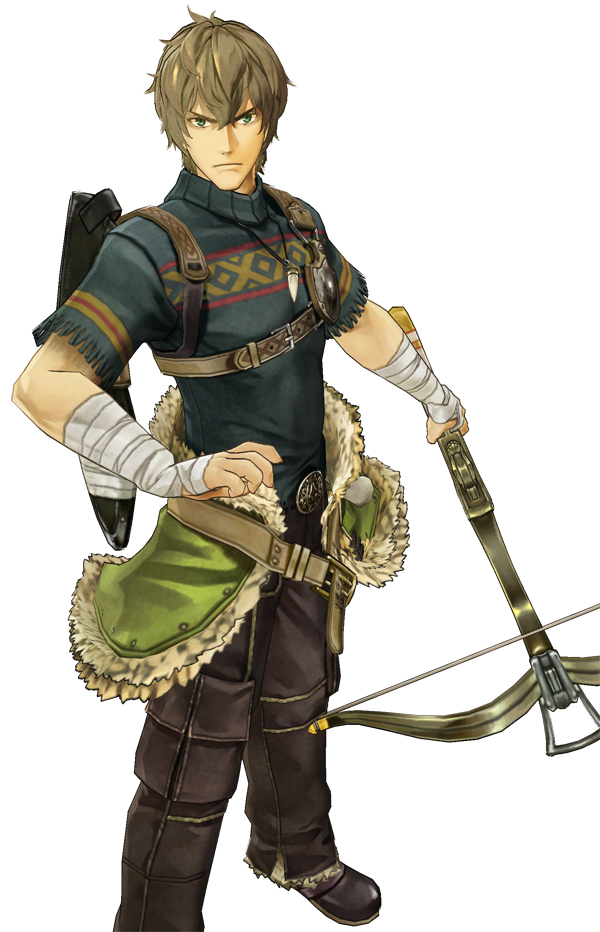 “ユーリス・グルンデン”是一个每天狩猎野兽的猎人青年。插图中他拿着铊和弩这两种武器,而他的战斗风格偏向于肉战类型(话说,拿弓的弓手也能成T?)