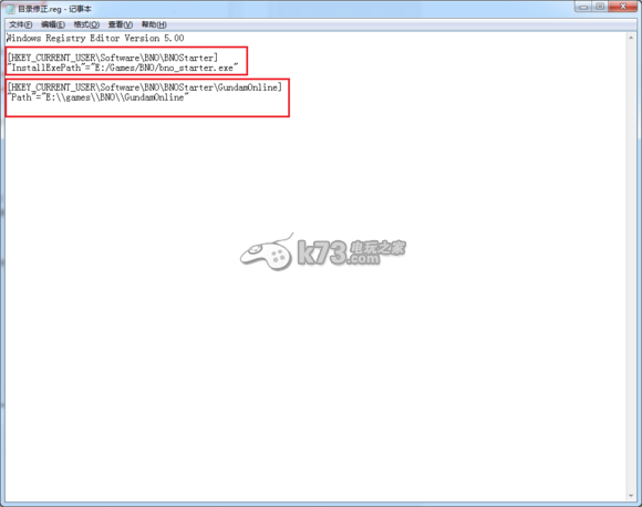 上面的是启动器的目录,下面是游戏的目录,将引号中间的盘符和目录修改成你游戏的实际目录,然后保存退出。