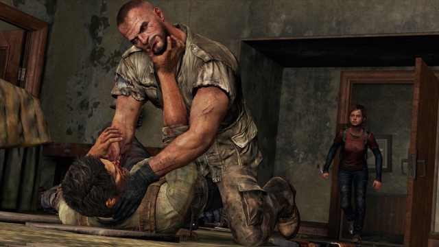 展示中乔尔与艾莉遇见了危险的暴力幸存者集团,在人单势孤的状况下,两人必须尽可能避免与敌人正面交锋,藉由匿踪潜行与声东击西等手段将敌人一一解决,像是捡起地上的空瓶往反方向拋掷来引开敌人,捡起铁管或砖块当成武器猛击敌人等。虽然乔尔配有大口径左轮手枪,不过因为弹药有限且容易打草惊蛇,因此不到最后关头不轻易使用。