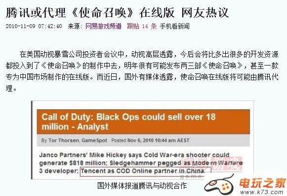 在前年的新闻中,腾讯与动视的合作被曝光。