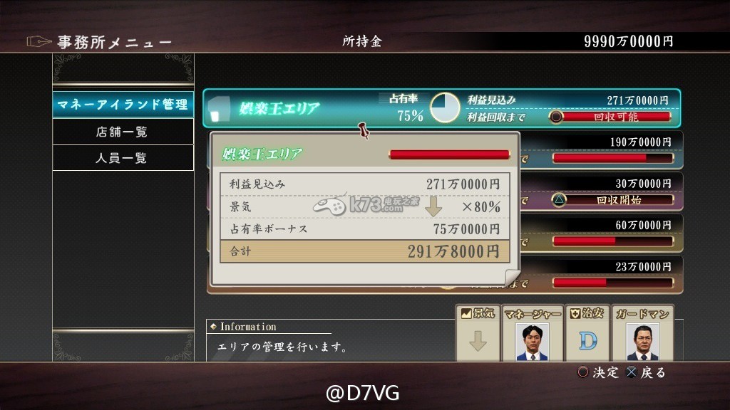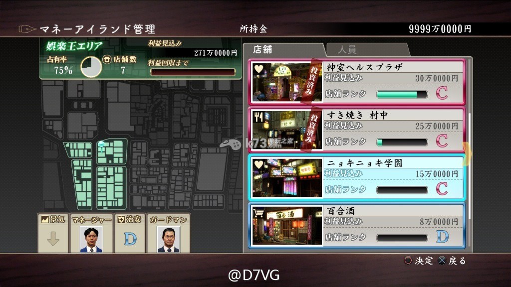 在游玩本作品时最不可或缺的就是赚取「金钱」,这次将公布首次于系列中登场的新系统「黑b经营手法(シノギ)」。介绍为其中一位主角・桐生一马的「黑b经营手法」的「神室町金钱乐园(神室町マネーアイランド)」。