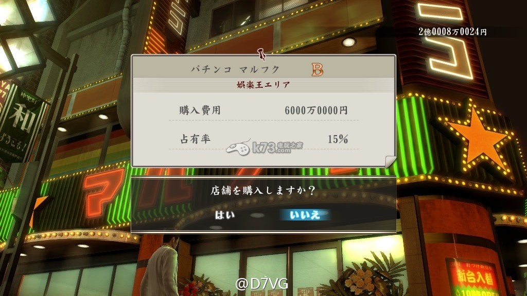 取出大笔金钱的桐生。这似乎也是《人中之龙》系列中,花费最高金额的购物。