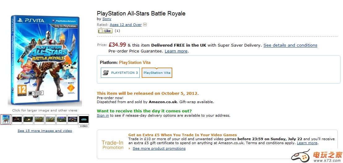 今天,英国亚马逊方面的关于PS3新作《索尼全明星大乱斗》的货架的发售日期又有了新的变动,本次的发售日期提前至了10月5日。同时封面包装也得到了曝光。