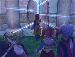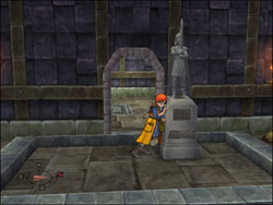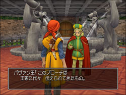→途中经过一个教会可以存档,往东走可以来到トロデーン城进入后发生事件。