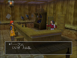 →来到镇左下角的房间里发现盗马者(得到1000G),随后到镇右下角的酒吧与老板对话进入黑店发生事件。