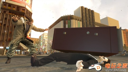 除了可把设置在街角的巨大装置跟道路标示等扯下来之外,也可以把眼前的敌人,也就是把「人」当作武器来挥舞等,各种强烈的力量技都可以让敌人彻底屈服。