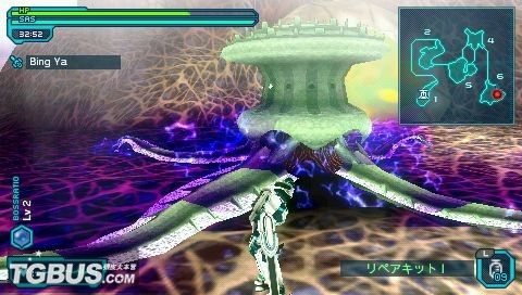 就PSP的画面来讲,已经达到了一线游戏的水准,怪物猎人神马的,也就是好一点点而已啦。本作搭建的场景较少,人体内部在同一个任务下是一样的场景,所以也不会出现太多弊端,人物建模也是清晰可见,细节处理的还可以,但是没有达到怪物猎人的水平(原谅我总拿MHP来比较吧…),场景地段之间不太明显,不看地图的话很难区分哪里是可以前进的区域。人物建立也有几个部位可选,还好装备啥的都是即时显示,人物造型相当于可以随时改变。