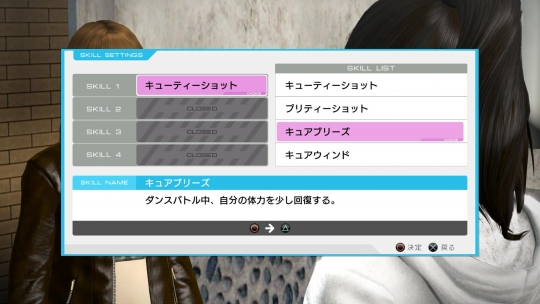 而遥可以使用称为舞蹈热血的技能。这个技能有着各种让战斗更有利的效果,要发动的话必须要让热血计量表累积到一定程度以上才可以。