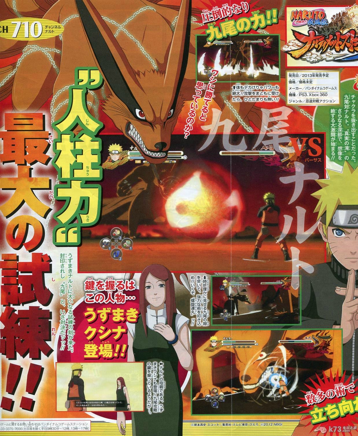 今天,NBGI公布了一张PS3独占作品《火影忍者 究极忍者风暴3》的全新杂志图,本次的杂志图以“人柱力的试练”为主题,介绍了本作中将会加入九尾、八尾等动漫中经典的人驻力,以下是杂志图详情。
