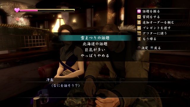 另外,酒店小姐的喜怒哀乐表现也以「脸部撷取」来制作,使得表现上变得更丰富了。再加上对话中的视点也追加了第一人称的关系,玩家可以体验如同亲自与酒店小姐面对面交谈的气氛。而在炒热气氛後,点巧克力棒的话…。用主观视点来玩或许会很火热喔。