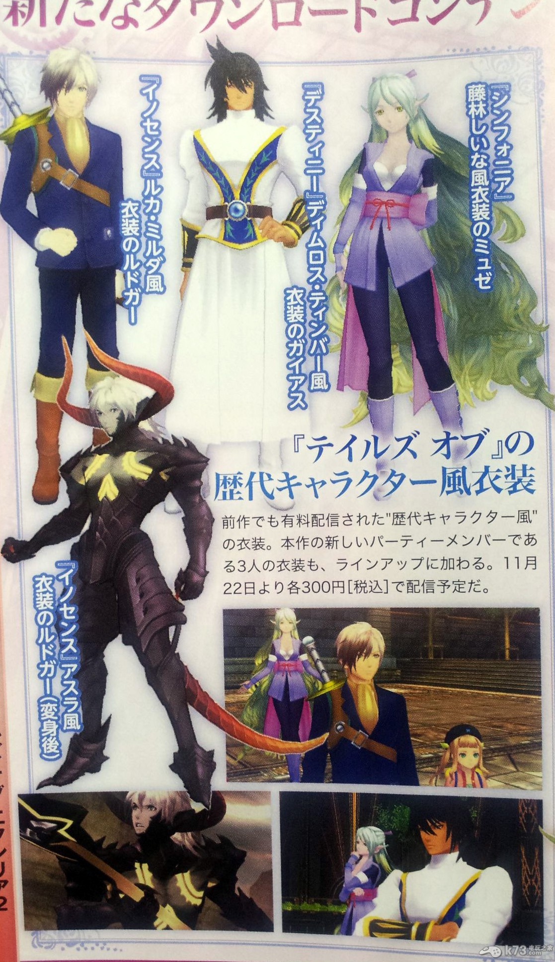 日前,NBGI公布了其预定发售于PS3平台的独占游戏《无限传说2》的全新情报,本周的fami通杂志图上公布了本作的后续dlc的详细情报,以下是杂志图及dlc详情。