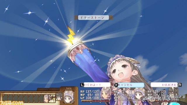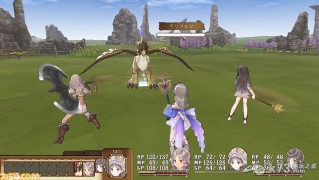 ▲战斗使用传统的回合制战斗,角色拥有丰富的技能和必杀技,也有炼金术士的专用物品哟!
