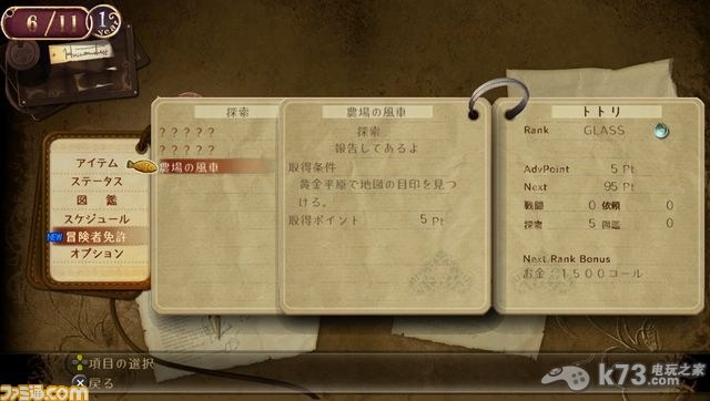 ▲讨伐敌人以及道具合成都能获得冒险者点数,之后提升冒险者等级的系统。期间如何未能达成的话就会游戏结束。
