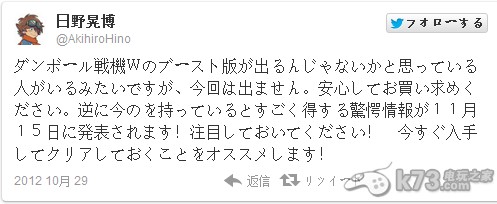日野晃博表示《弹波战机 W》的加强版完全是子虚乌有的事情,各位玩家请不想相信谣言,放心购买吧!另外,公司将于11月15公开重要的新情报,希望大家届时多多留意本站的后续报道。