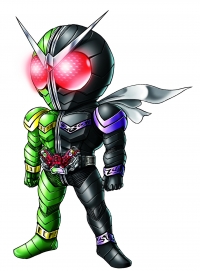 使用双重变身器(ダブルドライバー)来变身的,两人合一的假面骑士。可以因应状态来变换组合六枚盖亚记忆体(ガイアメモリ),总共变换九种型态来战斗。本作中,以基本型态的「旋风王牌(サイクロンジョーカー)」型态为基础,尚可以变身成「高热金属(ヒートメタル)」「月亮扳机(ルナトリガー)」「獠牙王牌(ファングジョーカー)」等型态。