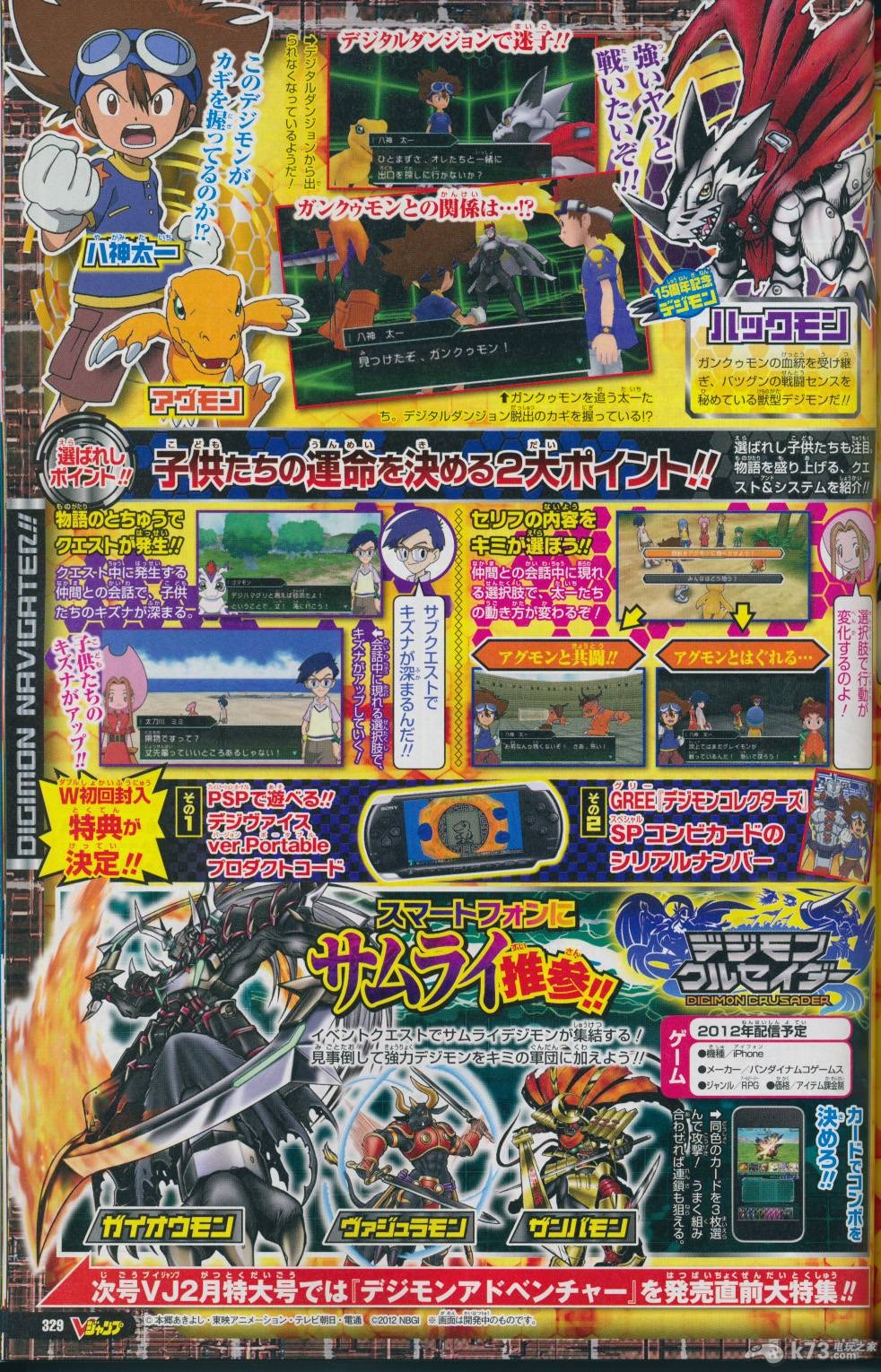 本周的fami通杂志图上公布了PSP独占RPG游戏《数码兽大冒险》的全新情报,官方对于上次公布的特典内容进行了详细介绍。另外,本作中还会加入一些强力的数码兽作为我方队员。