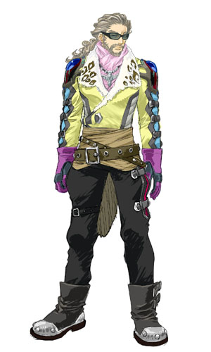 而在他的战斗形态方面,属于使用弯刀跟斧型的索玛武器来战斗的类型,其中基本上弯刀属于近距离战斗武器,斧头则是因为可以投掷攻击而属于中距离攻击武器,不过由于斧头在投掷出去之后还可以透过技的追加输入来自由操纵斧头飞出去后的飞行轨道,因此而可以衍生出其他的连携攻击招式来痛宰对手。另外他还可以使用各种攻击、支援或回復型的思念术来辅助战斗,可以说是一个战斗万能型的好用角色。