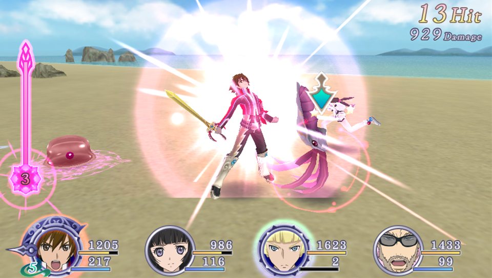 在本作中,当玩家们在攻击途中与敌人形成所谓追踪连结的状态时,将可以让陷入这个状态下的敌人呈现无防备状态,这时候玩家们可以利用通常攻击打出所谓的破坏攻击来将敌人给打飞出去,而在敌人被打飞出去的时候,玩家们还可以透过所谓的追踪移动来继续追上敌人给予连携重击。另外当玩家们在进行追踪连结的时候,这时候画面下方的我方伙伴图示如果一闪一闪的话,玩家们可以直接触控这名伙伴来发动跟伙伴一起协力展开的协力攻击交叉追击,藉此给予敌人重大的伤害。附带一提,当玩家们在进行破坏攻击的时候,如果这时候长长地压住攻击钮不放的话,就会变成能给予敌人重创的追击终结来攻击敌人唷!而透过上述的技法组合,就算敌人被打到半空中,玩家们也可以立刻展开追击动作,并透过与伙伴之间的不断连携来体验比前作更加痛快豪爽的战斗动作。