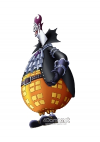 恐怖叁桅帆船的领导者「月光•摩利亚」是王下七武海其中一人,「影子果实」的能力者。可自由的操作影子,也可夺取他人的影子,再埋入尸体中製作成殭尸士兵。在故事中会使用鲁夫的影子做出巨大的特别僵尸「欧兹(オーズ)」与草帽一伙战斗。本作中也会重现与各角色的体型差异。