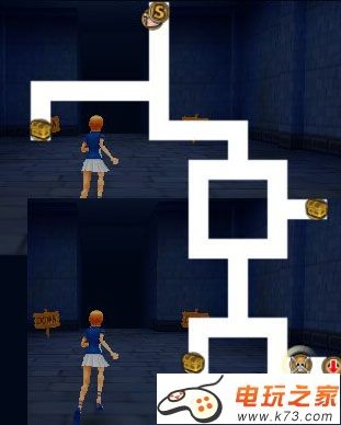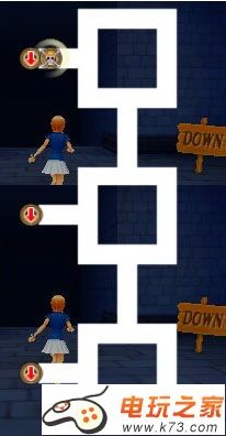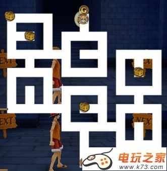 南馆二层2:本迷宫有两个下楼点通向南馆一层3,走下面那个可继续前进。再经过一层就到达西馆了。