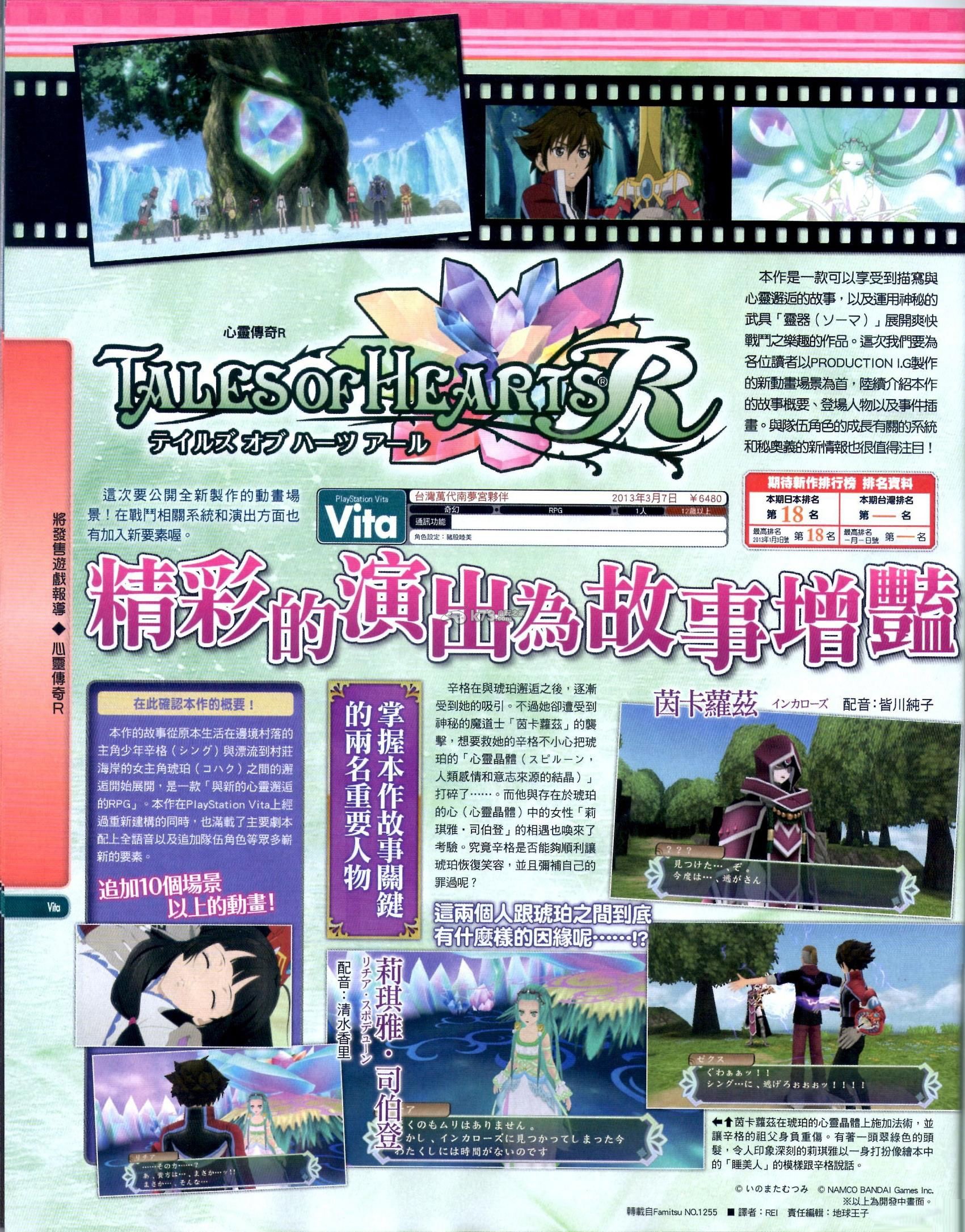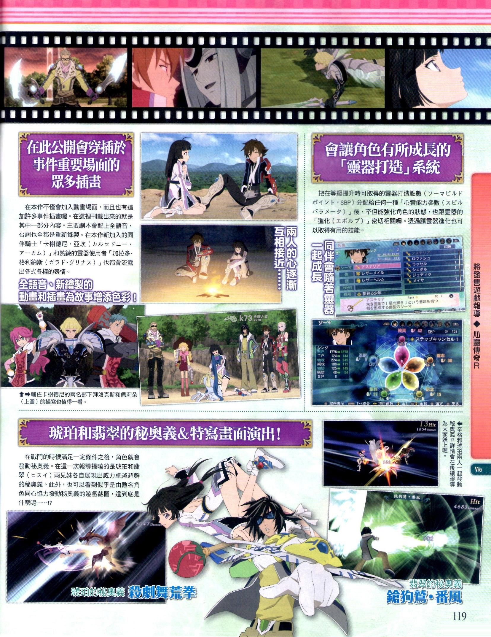 日前,台湾fami通方面公开了其最新一期的中文杂志扫描图,本次的扫描图公开了部分PSV《心灵传说R》的消息,具体介绍了游戏中的部分剧情角色、灵武的养成以及必杀技的介绍。