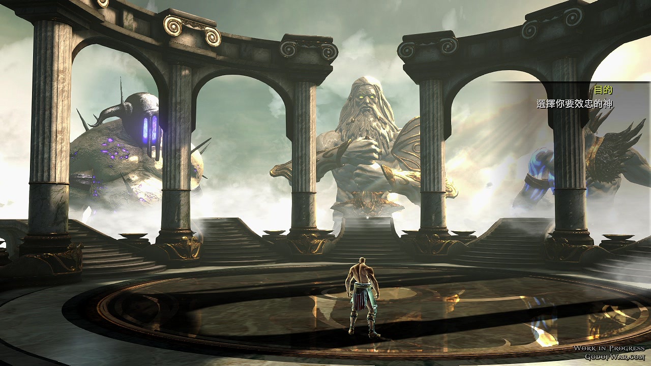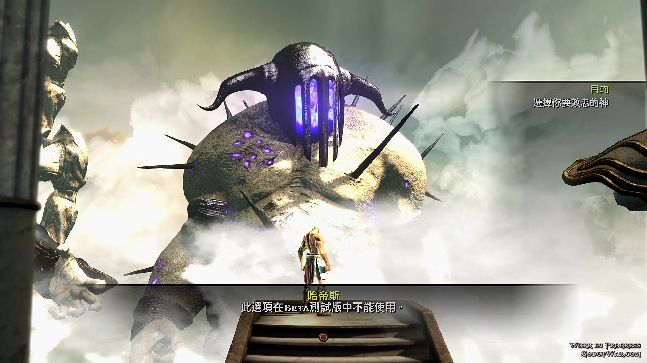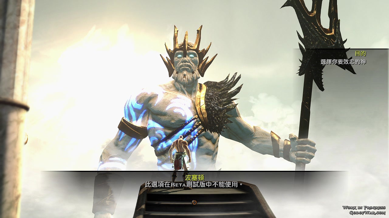 游戏一开始玩家就必须选则要效忠的希腊诸神,选择效忠后就能使用该神祇所赋予你的特殊神力技能,在此次测试版中仅开放了「战神阿瑞斯」、「宙斯」给玩家选择,但在画面上我们可以看到还有「冥王哈帝斯」、「海神波赛顿」等神祇。