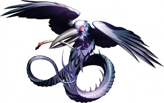 黑鸭(レイブン)有着像蛇一般长长下半身的大型乌鸦。有着群体狩猎猎物的习性,会马上唿叫同伴前来。建议在成为群体前打倒。