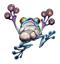 毒癞虾蟆(ポイズントード)华丽的外观就如想像中的一样,是个具有毒性的青蛙。跟癞虾蟆一样战斗力较低所以不成威胁,不过触摸到的话为了以防万一还是去洗个手吧。