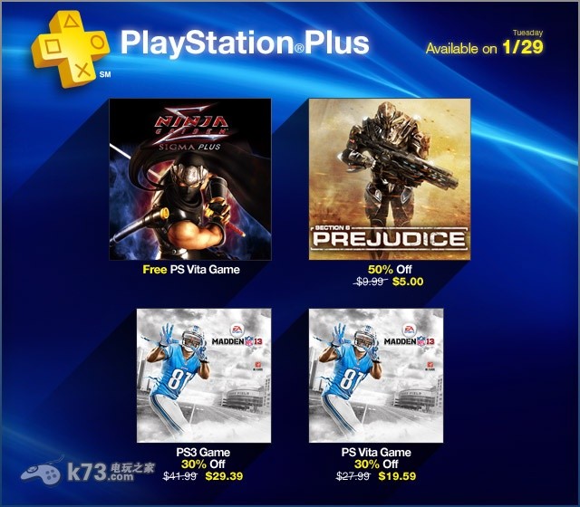 另外,除了免费的忍者龙剑传这个官方福利以外,PS3和PSV双版本的《Madden NFL 13》也会以七折的价格进行销售;而《格林机枪》《贪婪公司》和 《第八分队:偏见》将会以超低的五折进行销售,各位心动的玩家可要做好准备哟!